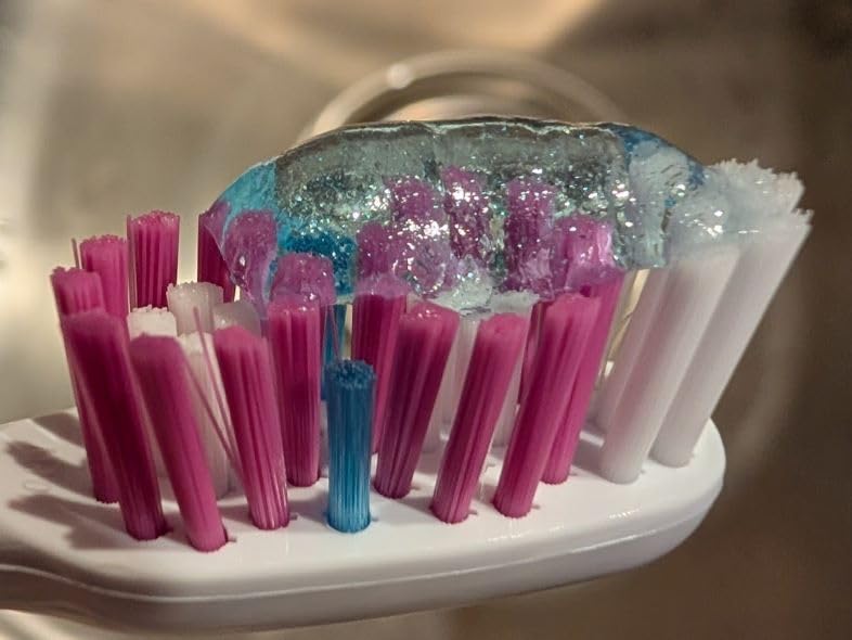 La textura se deshace mientras libera los agentes limpiadores y el extracto de niacinamida. Estos residuos ayudan a arrastrar manchas superficiales y mejorar el blanqueamiento. Solo continúa cepillando; se disuelve por completo en segundos.