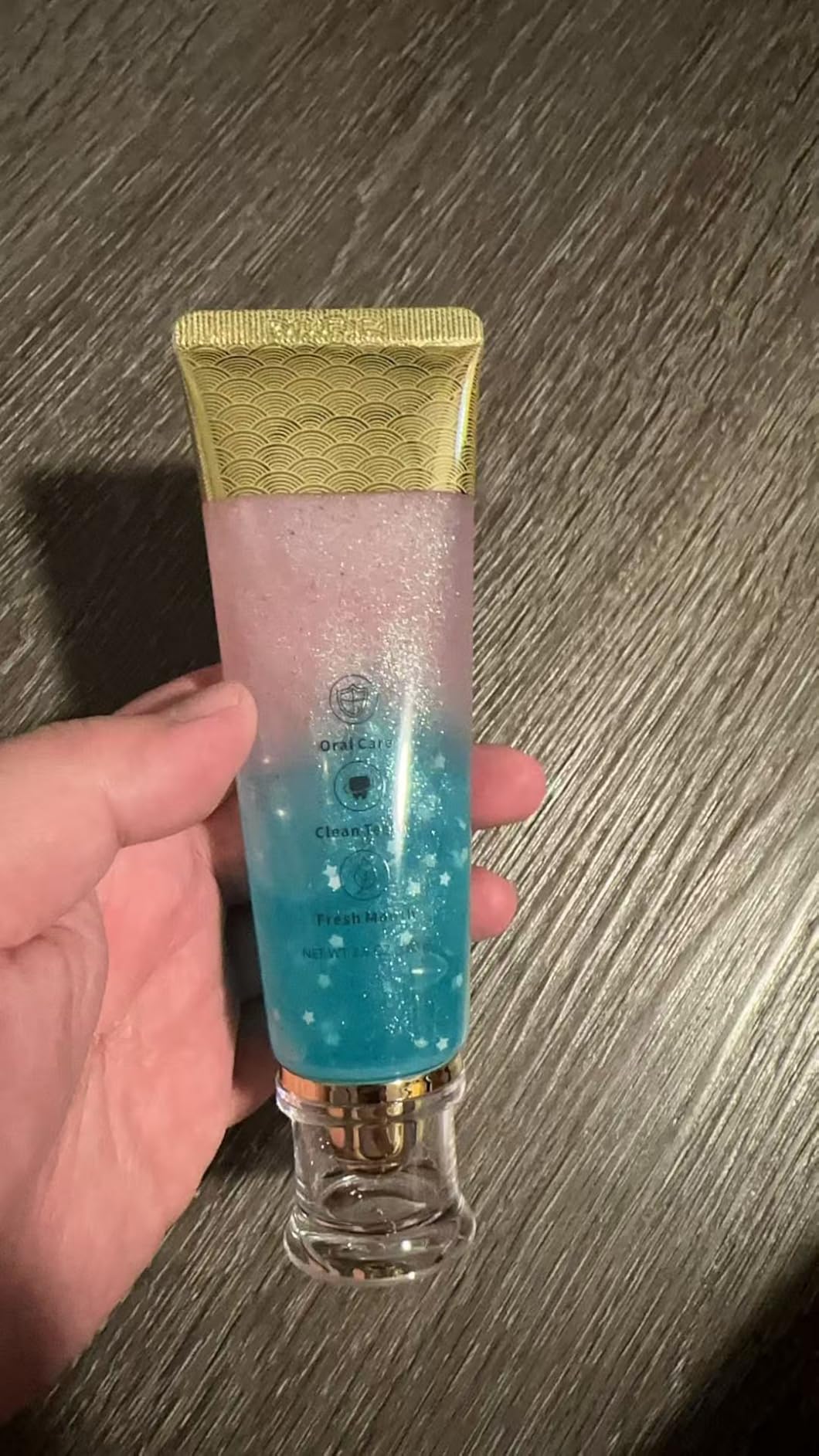 La pasta azul, con tabletas en forma de estrella de menta fresca y fitato de sodio natural, ayuda a disolver pigmentos externos como los del café y el té negro.